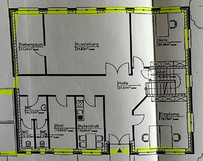 Kaltmiete: 12,60 EUR/m² (zzgl. 3,00 EUR/m² Nebenkosten)